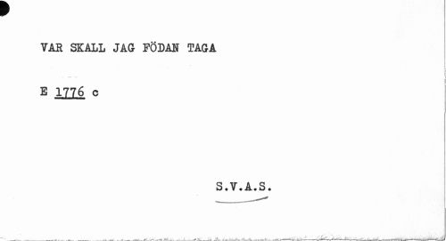 //// ¥ //// VAR SKALL JAG FÖDAN TAGA E 1776 c //// S.V.A.S. ////