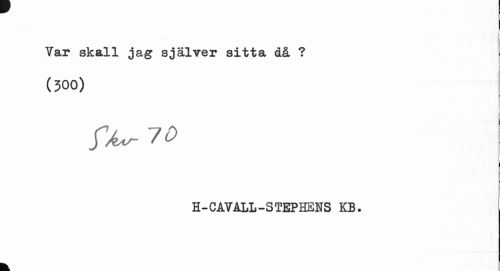 //// - //// Var skall jag själver sitta då ? //// § //// (300) //// j //// /V to //// I //// H-CAVALL-STEPHEHS KB. ////