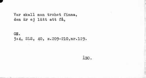 //// r //// v. //// Var skall man trohet finna, den är ej lätt att få, //// GE. //// 3:4, SLS, 40, s.209-210,nr.129. //// ABO. ////
