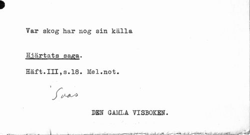 //// f j //// ! //// : //// Tar skog har nog sin källa //// i //// Hjärtats sagra. //// Haft.III,s.18. Mel.not. //// DEN GAMLA VISBOKEN. ////