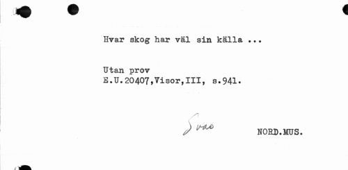 //// Hvar skog har väl sin källa • .• Utan prov //// E.U.20407fVisor,III, s.941. //// ) iNORD.MUS. ////