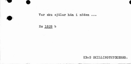 //// ^^ Tar sku själar hän i nöden //// Zz 1828 b //// KB:S 3KILLINGTRYCKSRSG. ////
