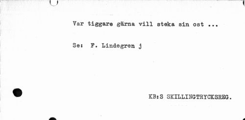 //// I //// Tar tiggare gärna vill steka sin ost Set ]?? Lindegren j //// ® Os S SKILLINGTRYCKSREG. //// a ////