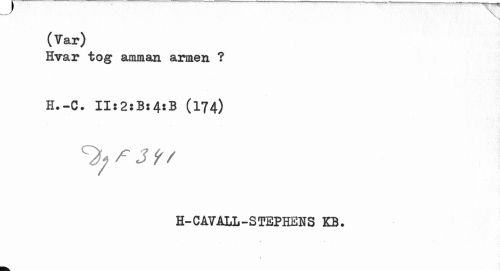 //// (Var) //// Hvar tog amman armen ? //// H.-C. II:2:B:4:B (174) //// H-CAVALL-STEPHEHS KB. //// 1 ////