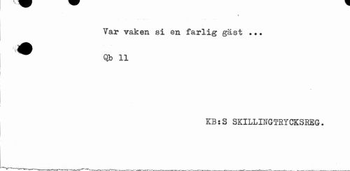 //// fr //// Var vaken si en farlig gäst ... Qb 11 //// KB:S SKILLMGTBYCKSBEG. ////