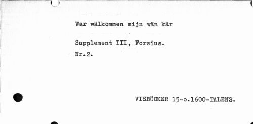 //// War wälkommen mijn wän kär //// Supplement III, Forsius. - Hr.2. //// 9 VISBÖCKER 15-o ? 1600-mLEHS. ////