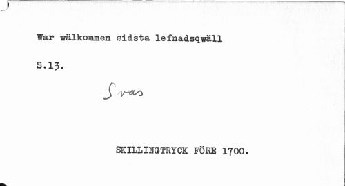 //// War wälkommen sidsta lefnadsqiräll S.13. //// Jho //// SKILLINGTRYCK FÖRE 1700. ////