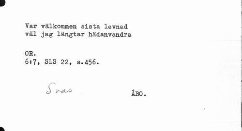 //// Yar välkommen sista levnad väl jag längtar hädanvandra //// OB. //// 6:7, SLS 22, s.456. //// i iBO. //// | ////