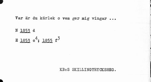 //// I //// i //// Var är du kärlek o vem ger mig vingar ... H 1855 d //// E 1855 c4; 1855 f5 //// I l //// KBsS SKILLIHGTBYCKSHEG. | //// 1 //// k ////
