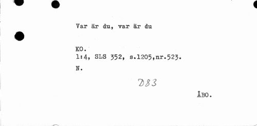 //// Yar är du, var är du KO. //// It4, SLS 352, s.1205,nr.523. N. //// 7)33 //// ÅBO. ////