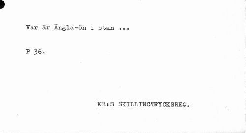 //// r //// Yar är Ängla-ön i stan •.. //// P 36. //// f f //// i i i //// r , //// | //// KB: S SKILLIIGTRYCKSHEG. ////