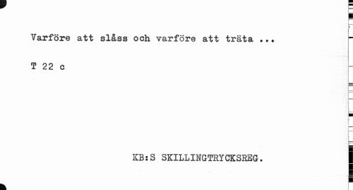 //// t //// Vårföre att slåss och vårföre att träta ... T 22 c //// j //// t //// i //// SBsS SKILLINGTRYCKSREG. | ////