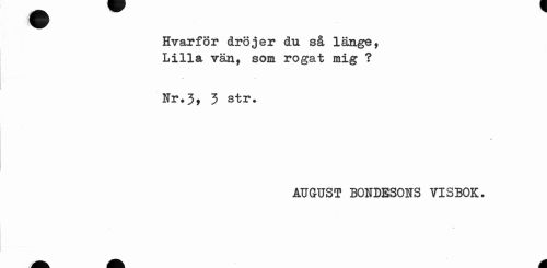 //// Hvarför dröjer du så länge, Lilla vän, som rogat mig ? //// Nr.3, 3 str. //// 4 //// AUGUST BONDESONS VISBOK. //// ¦ *. //// ^ A A ////