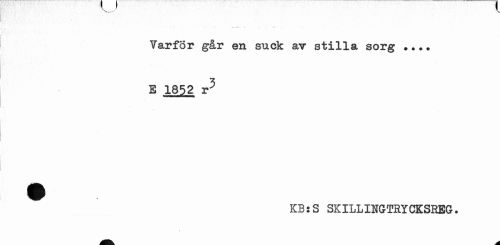 //// . - . . . . S //// Varför går en suck av stilla sorg ... E 1852 r5 //// KB:S SKILLINGTRXCKSREG. ////