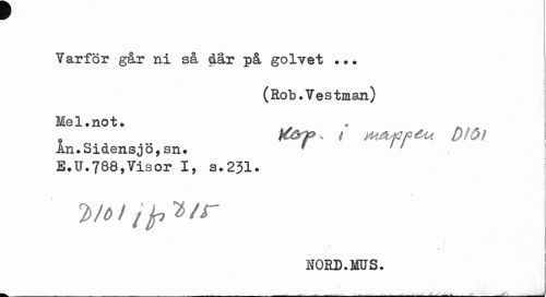 //// Varför går ni så dar på golvet ... //// (RolD.Vestman) //// Mel.not? //// 0 llånp s i H^Mf-jp&U Dm //// An.Sidensjö,sn. ' //// E.U.788,Visor I, s.231. //// 1>IÖI jjp^/r //// IORD.MUS. //// k. . . . _ — ___ . ; d- . . . - . ^... X' y xiå . /—V,. ___ ////