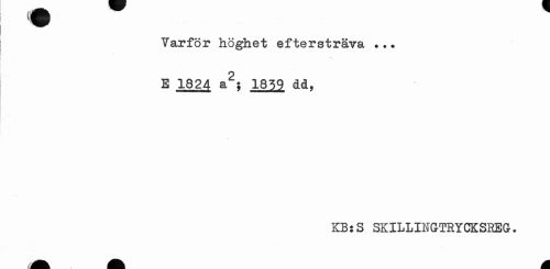 //// Varför höghet eftersträva ... E 1824 a2j 1859 dd, //// KB:S SKILLINGTRYCKSREG. ////