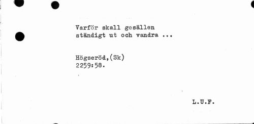 //// Yarför skall gesällen ständigt ut o eh vandra ... //// Högseröd,(Sk) 2259»58. //// ' i //// L.TJ.F, ////