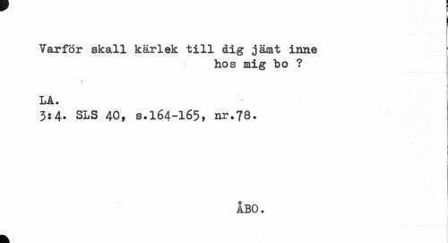 //// r //// I //// Varför skall kärlek till dig jämt inne //// hos mig bo ? //// l //// LA. //// 3:4. SLS 40, s.164-165, nr.78. //// I //// I //// I //// ÅBO. //// ¦ //// k ////