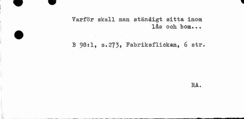 //// Varför skall man ständigt sitta inom //// lås och bom..? //// B 98:1, s.273, Fabriksflickan, 6 str, //// RA. //// v - .i* -W „___ a - — --__a <r - - J ////