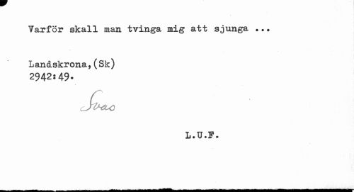 //// Varför skall man tvinga mig att sjunga ... //// Landskrona,(Sk) 2942:49. //// cft+A-ö //// L.U.F. ////
