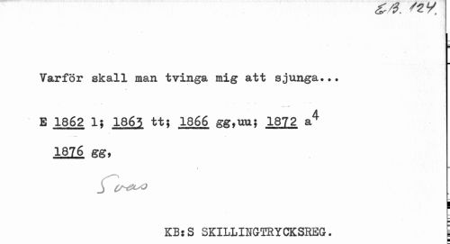 //// cc* v . ^ r , //// Varför skall man tvinga mig att sjunga... //// s E 1862 1; 1865 tt; 1866 gg,uu; 1872 a4 1876 gg, //// < — //// i //// ¦ //// KBj S SKILLINGTKYCKSREG. i //// ¦ ////