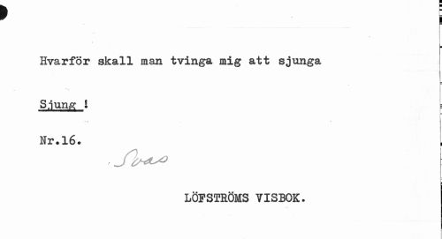 //// ' i //// i //// Hvarför skall man tvinga mig att sjunga //// i //// I* .1 . % //// Nr.16. //// B //// LÖFSTRÖMS VISBOK. ////