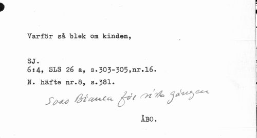 //// ' j //// ¦ //// Yarför så blek om kinden, //// * * //// SJ. i //// 6:4, SLS 26 a, s.303-305,nr.l6. //// N. häfte nr.8, s.381. [ //// ÅBO. ////