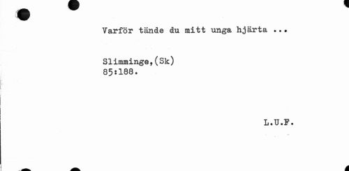 //// m //// Yarför tände du mitt unga hjärta ..• //// Slimminge, (Sk) 85:188. //// L.TJ.F. //// __ ä ////