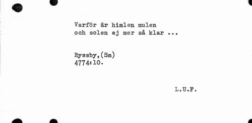 //// Varför är himlen mulen och solen ej mer så klar ••• //// Ryssby,(Sm) 4774:10. //// L.U.F. ////