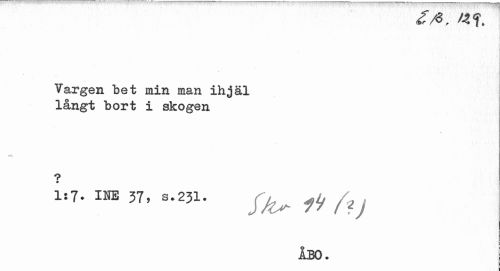 //// Vargen bet min man ihjäl //// långt bort i skogen # //// 1:7. in 37, -.231. J ^ fr, //// ÅBO. i ////