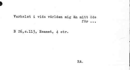 //// f //// Varhelst i vida världen mig än mitt öde //// för ... //// B 26 ,s.113, Hemmet, 4 str* [ //// 1 //// EA. I ////