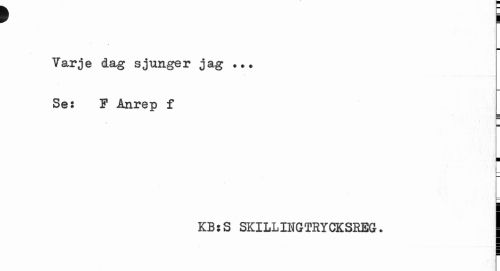 //// t I //// Varje dag sjunger jag Ses F Ånrep f //// ¦ //// KB:S SKILLINGTRYCKSREG. I ////