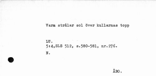 //// Tarm strålar sol över kullarnas topp LU. //// 5s4,SLS 512, s.580-581, nr.276. N. //// ÅBO. ////