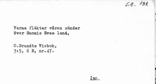 //// , 7 O //// T arma fläktar våren sänder över Suomis Svea land, //// O.Brandts Visbok, //// 3:5, 6 B, nr.47. //// | //// f //// ÅBO. j ////