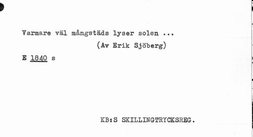 //// t I //// Yarniare väl mångstäds lyser solen ..• //// (Av Erik Sjöberg) //// E 1840 s //// i //// i //// L //// f ¦ //// KBjS SKILLINGTRYCKSREG. I //// f ////