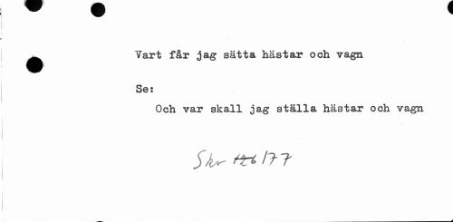 //// • Vart får jag sätta hästar och vagn //// ) //// Se: //// Och var skall jag ställa hästar och vagn //// Skr t* /?? ////