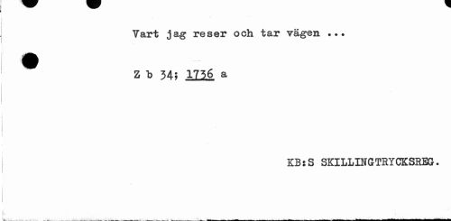 //// Vart jag reser och tar vägen ... ^ Z b 345 1736 a //// KB$S SKILLINGTRYCKSREG. ////