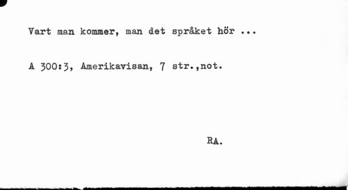 //// Yart man kommer, man det språket hör ... A 300:5, Amerikavisan, 7 str.,not. //// HA. //// . --- - ___-...- —- I) III I ^ ¦ - — --—...———-— - — —- ////