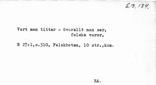 //// Vart man tittar - överallt man ser, //// falska varor, //// sr»*» A. //// B 27$1,s.310, Falskheten, 10 str.,kom. //// 1 //// HA. ////