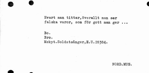 //// Hvart man tittar,överallt man ser falska varor, som för gott man ger ... //// Bo. Bro. //// Mskpt.Soldatsånger,E.U.28J84. //// NORD. MUS. ////
