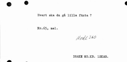 //// Hvart ska du gå lilla fänta ? //// Nr,65, mel# //// rftuU 260 //// DRAKE MS.KB. LEKAR. ////