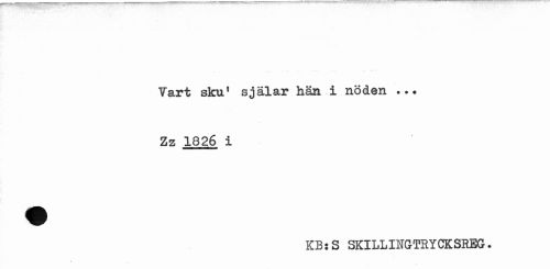 //// Yart sku1 själar hän i nöden ... Zz 1826 i //// KB:S SKILLINGfEYCKSREG. ////