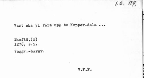 //// /V? , r Tt //// Vart ska vi fara upp te Kopper-dala ... //// Sk af tö, (B) 1276, s.2. //// Vaggv. -bamv. //// V.F.F. i ////