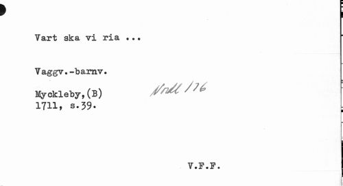 //// i //// Yart ska vi ria ... Vaggv.-barnv. //// Myokleby, (B) /jfa/t //// 1711, s.39. . //// |= //// ¦ I //// V.F.P. | ////