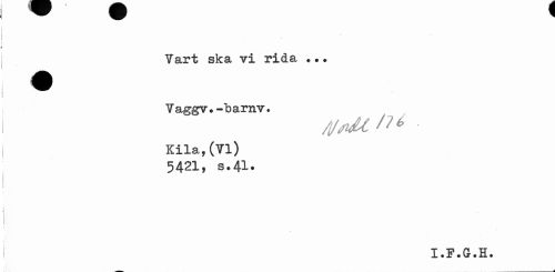 //// Vart ska vi rida * •. V aggv•-barnv. //// /l/<nM/H //// Kila,(Yl) 5421, s.41. //// I.F.G.H. ////