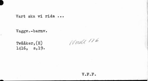 //// Vart ska vi rida •* * //// i //// Vaggv.-barnv. //// fvååker, (H) | //// 1416, s,19. : //// Y.F.F. ////