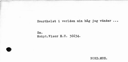//// Hvarthelst i verlden min håg jag vänder ... Sm. //// Mskpt.Visor E.U. 36634. //// HORD.MUS. ////