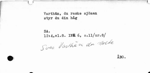 //// f ..." ... //// Varthän, du raske sjöman styr du din håg //// SA. //// 12:4,el.8. INE 6, s.Il/nr.8/ ////