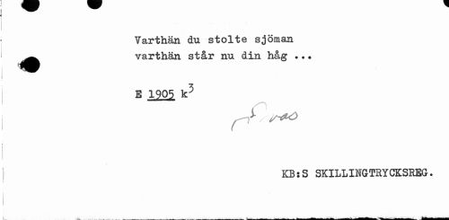 //// Yarthän du stolte sjöman ^^ varthän står nu din håg ... //// E 1905 k5 //// KBsS SKILLINGTRYCKSREG. //// Ii ¦ W .. . ' ... ___t. '' l---i , dLfil ' jiUåkijLr* 4*4 SzUkLJi,. ////