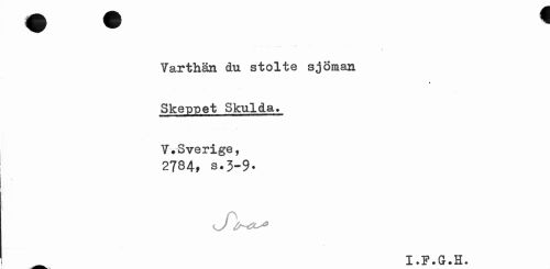 //// J ... M«>« + '"* //// Varthän du stolte sjöman Skeppet Skulda. V?Sverige, //// 2784, s.3-9- //// i //// I.F.G.H. ////